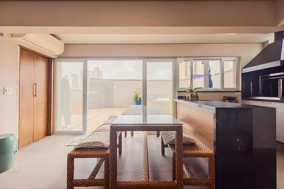 Cobertura duplex – 223 m² – 3 dormitórios (2 suítes) – 4 vagas – vista panorâmica - totalmente reformada Cobertura duplex totalmente reformada, com 223 m² de área privativa, que combina amplitude, conforto e uma vista aberta e deslumbrante da cidade. O imóvel conta com pé-direito duplo, proporcionando sensação de espaço e excelente iluminação natural. A área social é integrada e convida ao convívio, com ambientes amplos e bem distribuídos. Na área íntima, são 3 dormitórios, sendo 2 suítes, garantindo conforto e privacidade para toda a família. O grande destaque fica para a varanda com área gourmet, equipada com churrasqueira e jacuzzi, perfeita para momentos de lazer e para receber convidados. O apartamento dispõe ainda de ar-condicionado em todos os ambientes e 4 vagas de garagem. O condomínio oferece piscina, brinquedoteca, playground, salão de festas e sauna. Localização privilegiada, próxima a áreas verdes como a Praça Monsenhor Galvão Sousa, Praça Ayrton Senna e o Parque Alfredo Volpi, proporcionando qualidade de vida e contato com a natureza. Uma excelente oportunidade para quem busca uma cobertura moderna, com vista e espaços ideais para viver e receber bem.