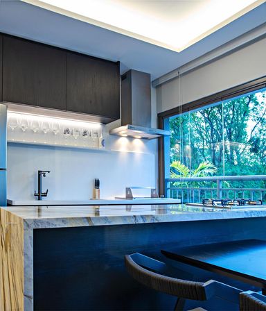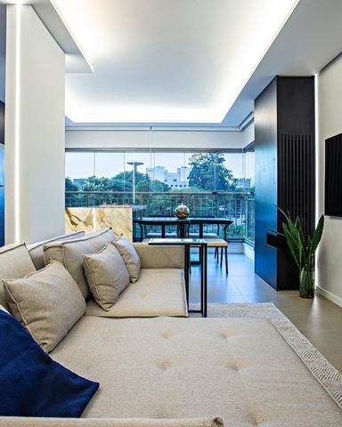 Apartamento moderno e bem planejado, com vista livre para praça e excelente iluminação natural. Projeto assinado por arquiteto, com marcenaria sob medida e acabamentos em mármore, valorizando cada detalhe.