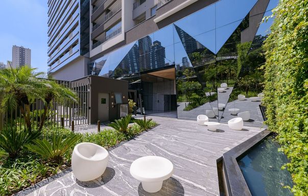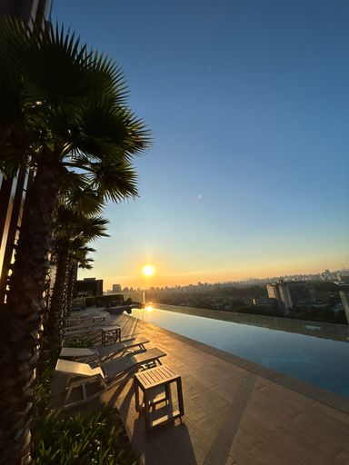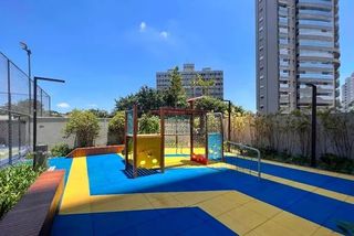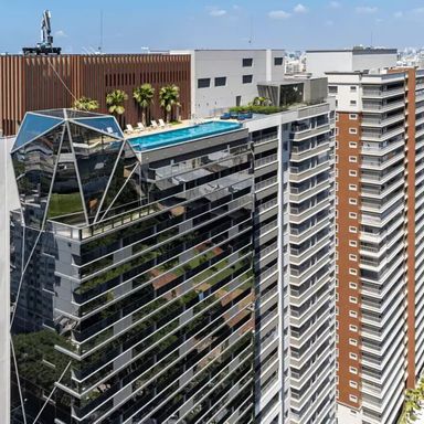 O condomínio oferece infraestrutura diferenciada, com piscina no rooftop e vista 180° para São Paulo, academia completa equipada com Life Fitness, valet para visitantes, brinquedoteca, playground, quadra poliesportiva, sauna e acesso facilitado pela ciclofaixa da Av. República do Líbano com Indianópolis.