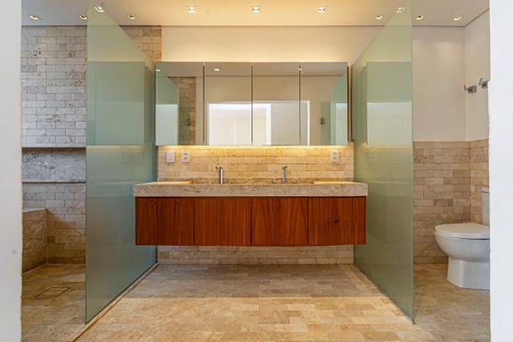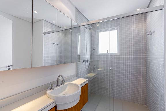 São 2 amplas suítes, sendo a suíte master um verdadeiro refúgio: conta com terraço privativo, closet, banheiro com hidromassagem e bancada com duas cubas, totalizando cerca de 40m² dedicados ao conforto e bem-estar.