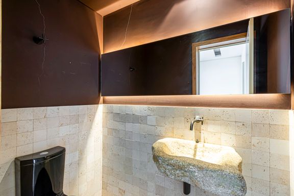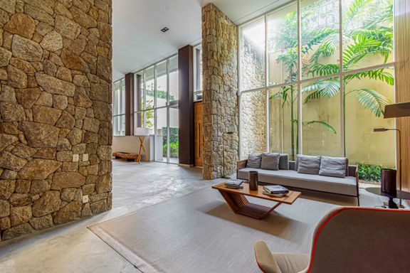 A área social impressiona com seus aproximadamente 75m², integrando salas de estar e jantar com terraço, em um ambiente iluminado e arejado graças ao pé-direito livre de 2,70m e aconchegante lareira.