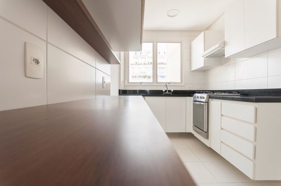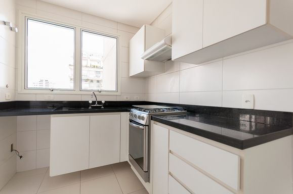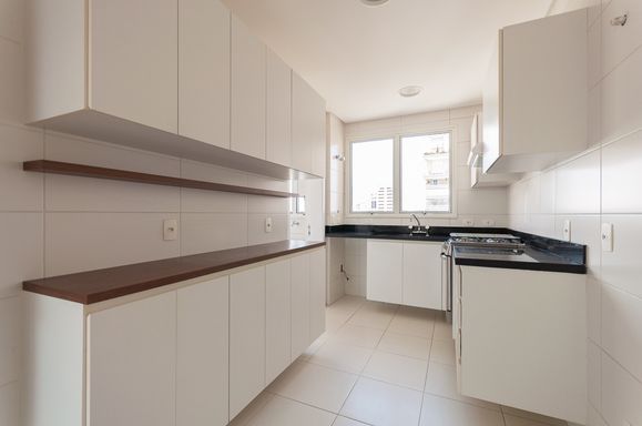 A cozinha planejada é funcional e bem distribuída, com entrada de serviço independente, além de área de serviço espaçosa.