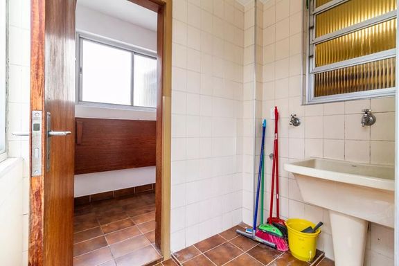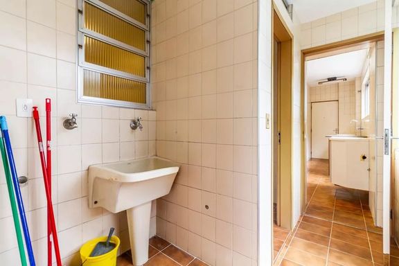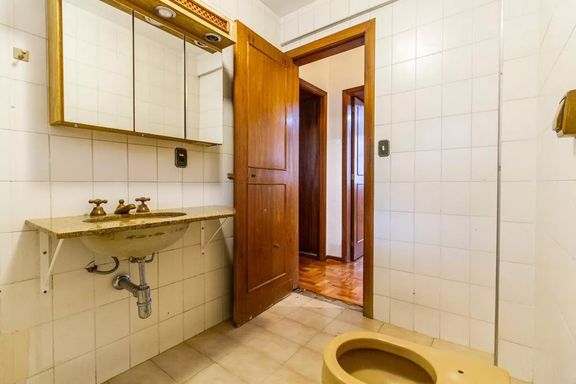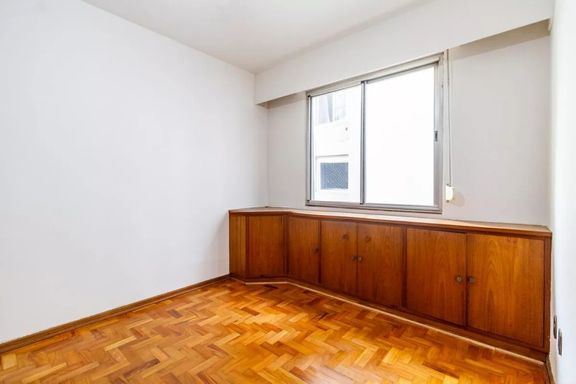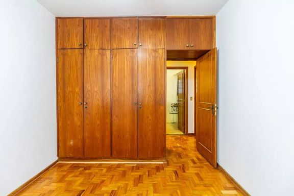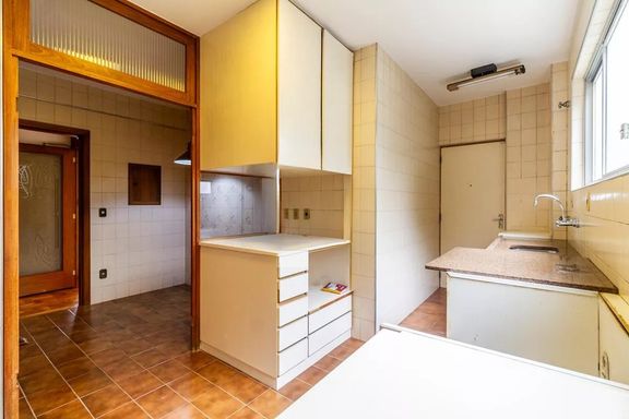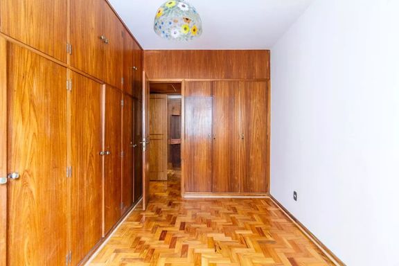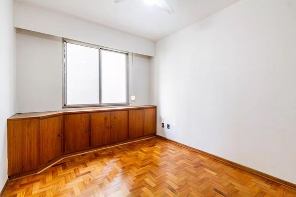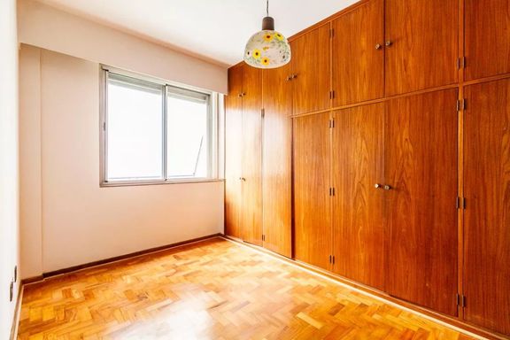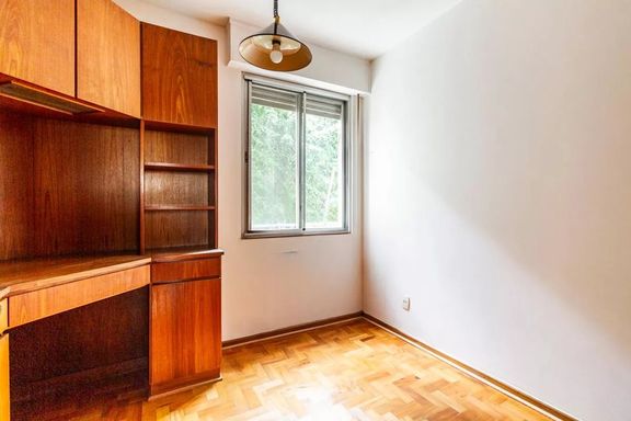 São 3 dormitórios e 2 banheiros, com a possibilidade de criar uma suíte com closet ou um escritório privado. Os quartos são repletos de armários embutidos em madeira nobre, e o piso de taco de alta qualidade, aliado ao pé-direito generoso, proporciona uma sensação de amplitude e sofisticação.