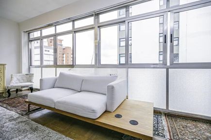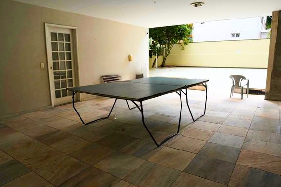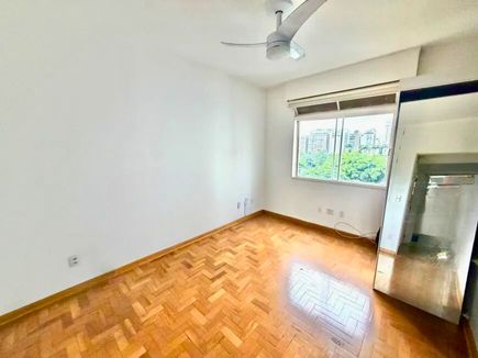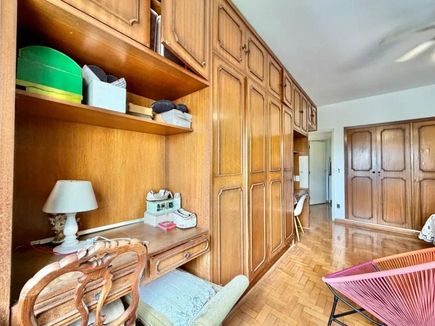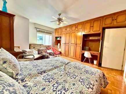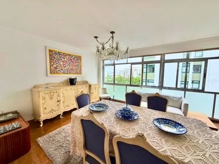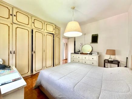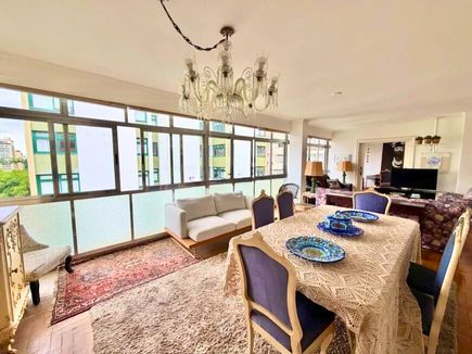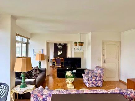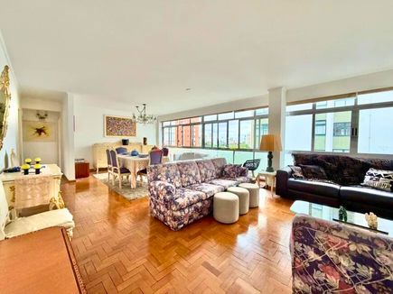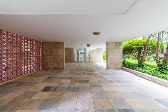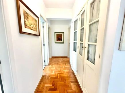 O imóvel possui ampla sala com janelas do chão ao teto, garantindo excelente iluminação natural e ventilação. A planta bem distribuída permite modernização, valorizando ainda mais os espaços. Pé-direito generoso e piso de taco de alta qualidade reforçam a sensação de amplitude e elegância.