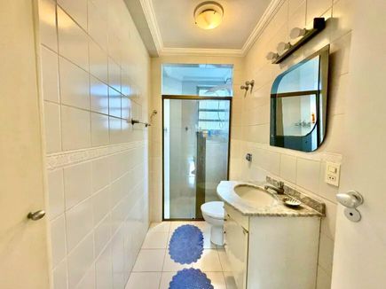 A área íntima conta com 3 dormitórios amplos, todos com armários embutidos em madeira nobre, além de 3 banheiros. Dispõe ainda de lavabo e copa, trazendo praticidade ao dia a dia.
