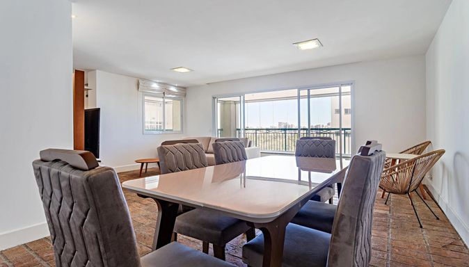 Entre as características do imóvel, destacam-se uma área de serviço completa, banheiro de serviço, closet na suíte principal, dependência de funcionário, depósito e despensa, proporcionando excelente organização. O apartamento conta com uma sala e extensa varanda integrados, com uma linda vista do Bairro Jardim Paulista, perfeito para receber convidados, além de infraestrutura para ar-condicionado. Os móveis planejados garantem praticidade e estilo.