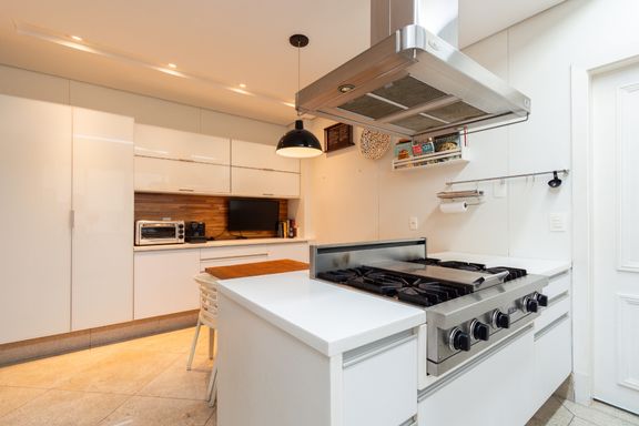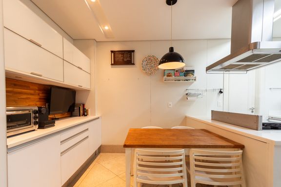 A área social impressiona pela amplitude, com sala de estar generosa, sala de jantar elegante e lavabo — perfeitas para receber com conforto. A cozinha é totalmente planejada e integrada a uma copa aconchegante, além de contar com lavanderia, quarto e banheiro de serviço.