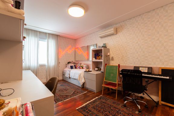 Com 249m², o imóvel foi totalmente reformado e está pronto para morar, combinando elegância, conforto e funcionalidade. Todos os ambientes contam com ar-condicionado, proporcionando bem-estar térmico em todo o apartamento.