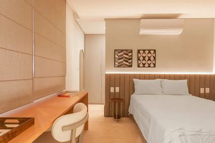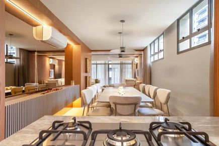 Com uma sala ampla, janelões que proporcionam iluminação abundante e um terraço aconchegante, você terá um espaço perfeito para receber amigos e familiares. Além disso, todos os ambientes contam com ar condicionado para o seu conforto.