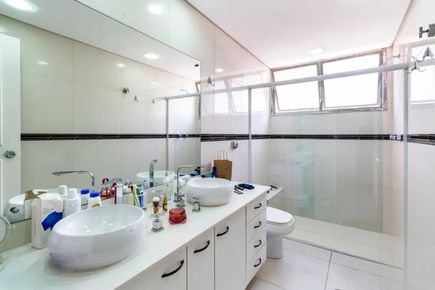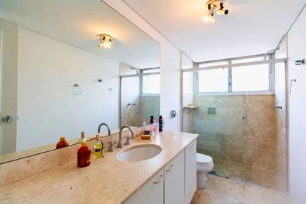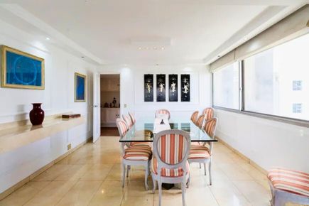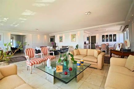 Living imponente com janelões de parede a parede, proporcionando luminosidade excepcional, ventilação natural e vista livre. Sala ampla para até 4 ambientes, com piso em mármore e lavabo, ideal para receber com conforto e sofisticação. Planta quadrada e muito bem distribuída.