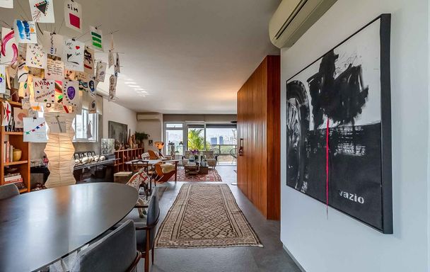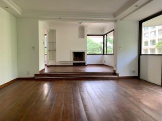 Com 235 m² de área privativa, o imóvel oferece uma planta ampla e bem distribuída. O living rebaixado para três ambientes, com piso em tábua corrida, traz elegância e personalidade aos espaços. Em nível elevado, há uma sala com lareira, além de sala de jantar independente. O apartamento conta ainda com hall social privativo e varanda.