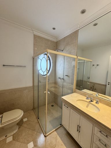 Conta ainda com seis banheiros completos, incluindo box, banheira de hidromassagem e acabamento de alto padrão.