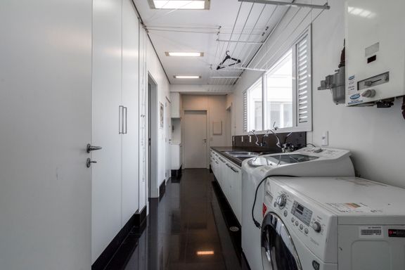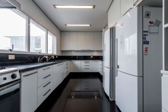 Ampla cozinha, lavanderia e 2 dormitórios de serviço.