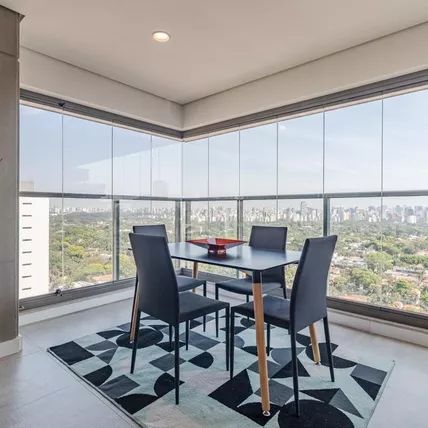 Com varanda envidraçada integrada com a sala com vista magnífica para o Jardim Europa.