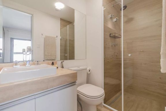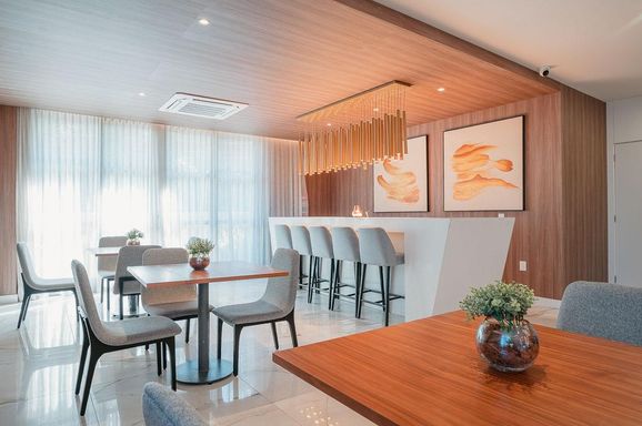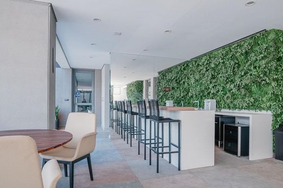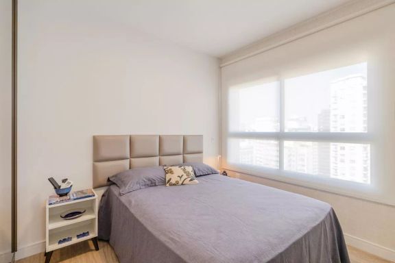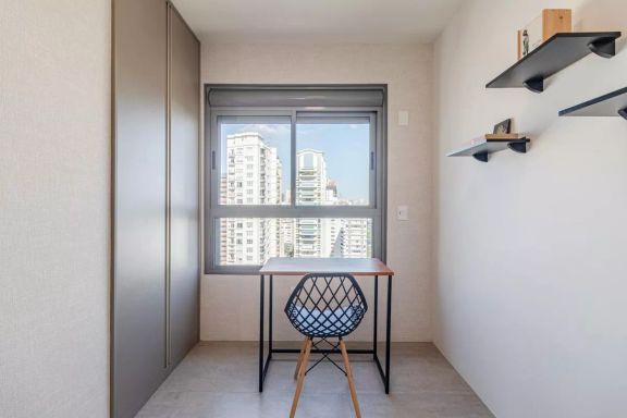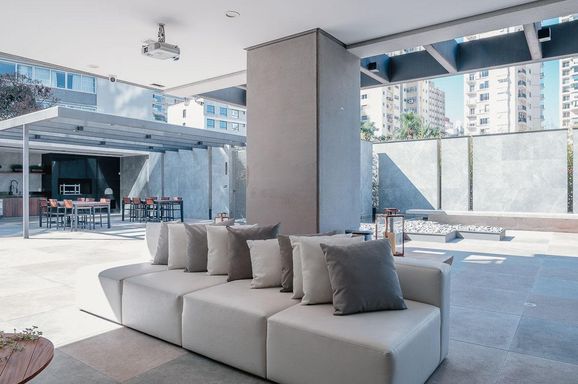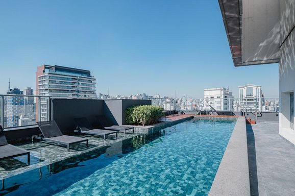 A área comum do edifício possui espaço gourmet com churrasqueira e forno de pizza, sala de jogos com mesa de bilhar, salão de festas, academia e piscina no rooftop com vista de 360 para o bairro dos Jardins.