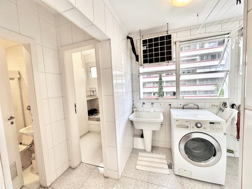 Condomínio exclusivo, com apenas um apartamento por andar, oferecendo excelente distribuição de planta e uma encantadora varanda com vista para a copa das árvores. O living, amplo e iluminado, é composto por três ambientes, e o quarto dormitório foi integrado ao espaço, ampliando ainda mais o ambiente. Os cômodos são claros, arejados e possuem grandes janelas, com a varanda harmoniosamente conectada. Lavabo disponível. Na área íntima, são três suítes, todas com ótimos armários e ar-condicionado, sendo que a suíte máster se destaca por seu espaçoso walk-in closet e ambiente diferenciado. A cozinha é planejada, com muitos armários, despensa e lavanderia ampla, além de contar com quarto e banheiro de serviço. O imóvel oferece quatro vagas de garagem. O condomínio possui piscina, quadra poliesportiva e salão de festas/espaço gourmet.