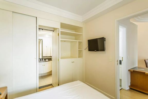 O imóvel oferece uma experiência diferenciada de moradia, com serviços inclusos, como arrumação e limpeza, café da manhã, internet, além de infraestrutura completa com piscina e restaurante no condomínio.
