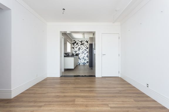 O living para dois ambientes é amplo e bem iluminado, integrado à área social, criando um espaço perfeito para receber. São 2 dormitórios, sendo 1 suíte com closet, todos com armários planejados e acabamentos de alto padrão. A cozinha e os banheiros foram modernizados, e o piso de madeira traz aconchego e sofisticação.
