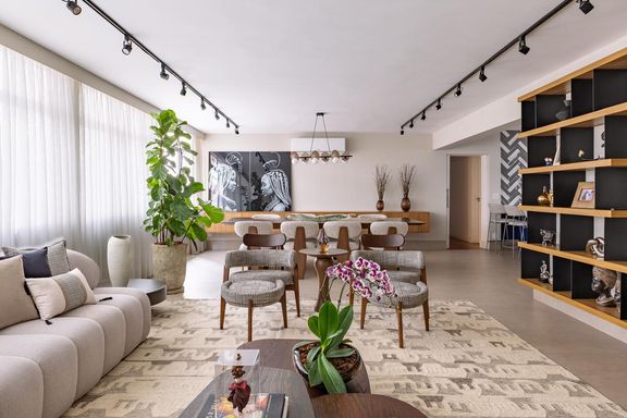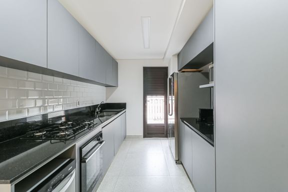 Com 165 m² de área privativa, o imóvel apresenta um projeto contemporâneo, funcional e acolhedor. No primeiro piso, estão a sala de TV integrada ao terraço com fechamento em vidro do piso ao teto, cozinha de apoio, lavabo e 2 suítes, sendo a master com closet.
