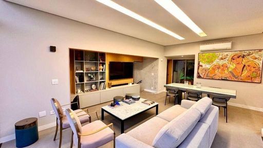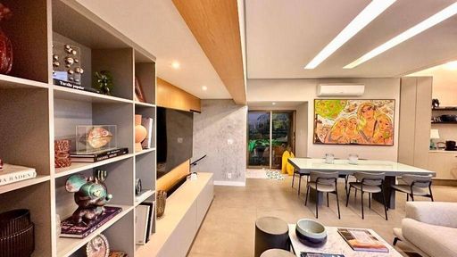 O apartamento dispõe ainda de ar-condicionado em todos os ambientes e 4 vagas de garagem.