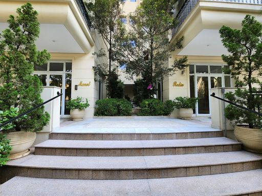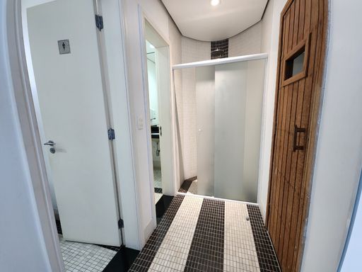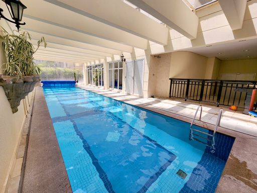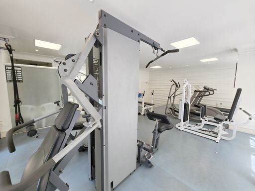 O prédio, seminovo e construído em 2004, tem fachada neoclássica e oferece lazer com piscina coberta, academia equipada e salão de festas.