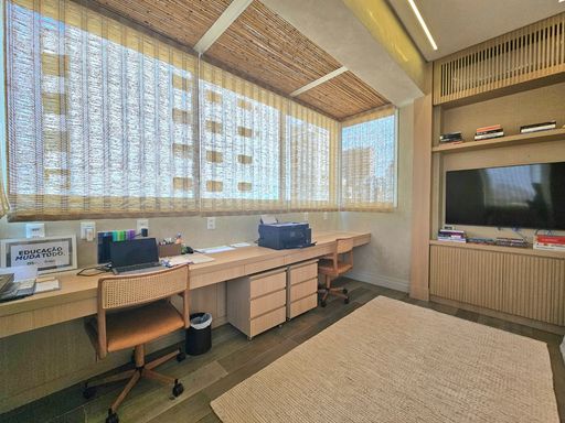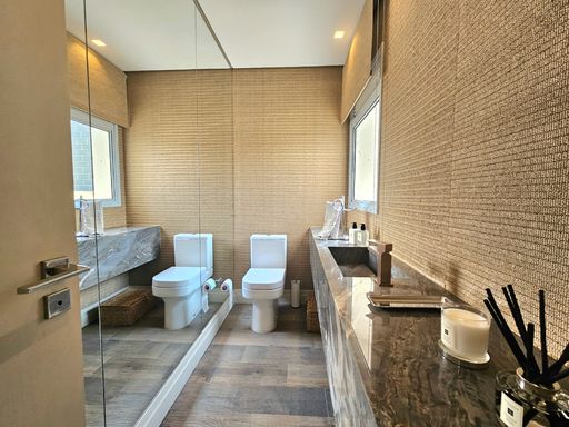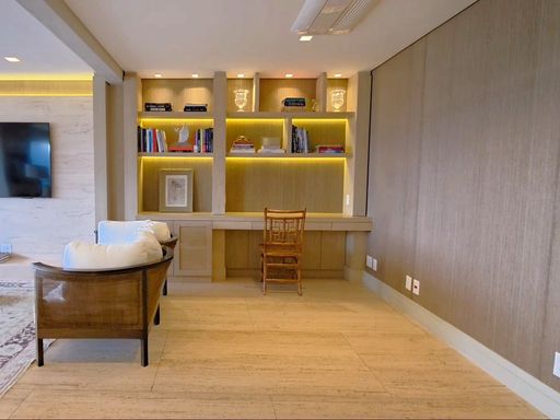 Completando este espaço, encontram-se um elegante escritório, um lavabo e uma quarta suíte,