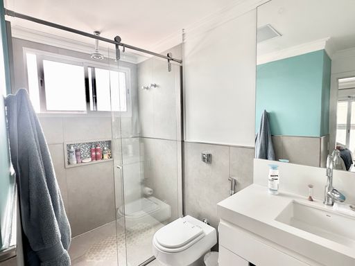 Na área íntima, são 3 suítes espaçosas, todas com armários embutidos de qualidade, piso laminado e ar-condicionado. A suíte master conta com closet sofisticado e jacuzzi, proporcionando um ambiente de relaxamento e privacidade.