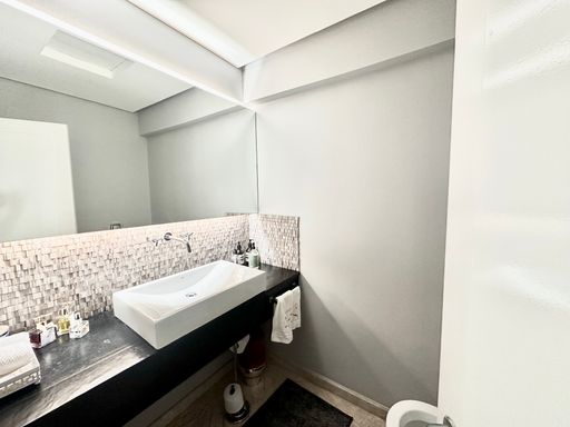 A área de serviço é completa, com dependência para funcionária.