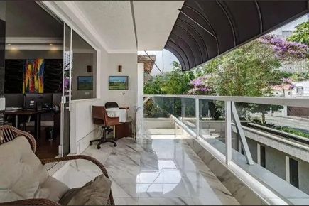 No piso superior, dispõe de 6 salas, 1 studio, 1 cozinha, sacada e 4 banheiros.