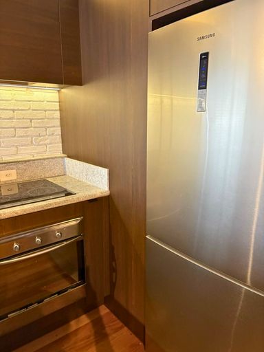 O amplo living conta com piso em madeira nobre, ar-condicionado e integração harmoniosa com a cozinha americana, equipada com armários de alto padrão. O terraço com vista permanente valoriza ainda mais o ambiente, tornando-o ideal para quem aprecia espaços bem planejados.