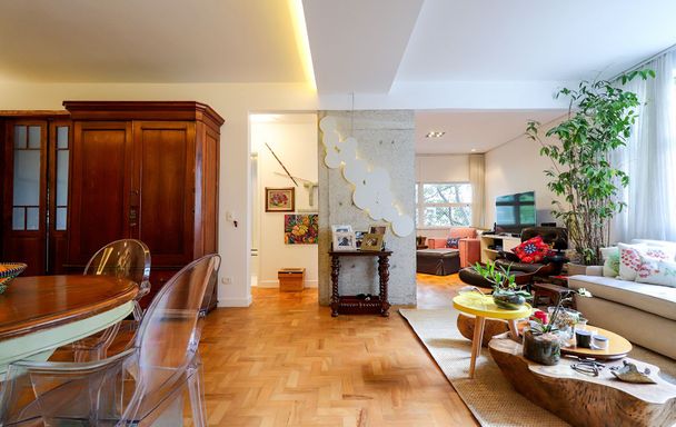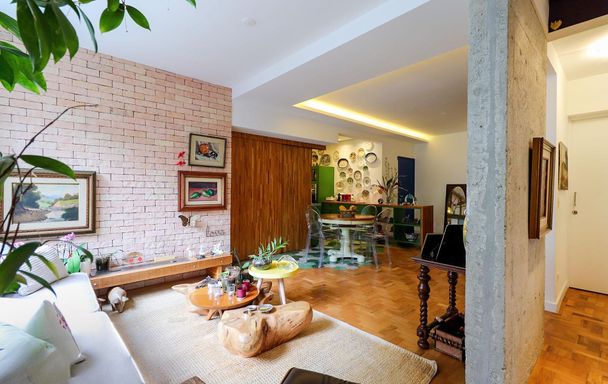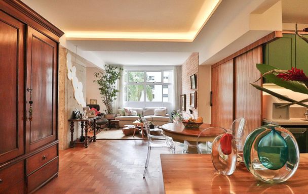 A reforma criteriosa incorporou acabamentos de alto padrão, marcenaria sob medida e soluções arquitetônicas que valorizam fluidez e equilíbrio. A cozinha em conceito aberto, totalmente renovada, conecta convivência e praticidade, traduzindo um estilo de morar leve e atual.