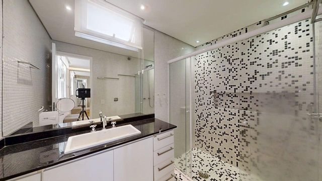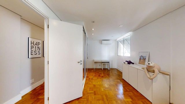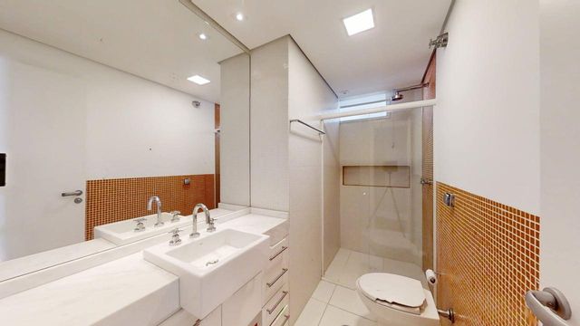 O imóvel é amplo e bem iluminado. A planta original possui 4 dormitórios — atualmente, um deles foi integrado à sala, criando um agradável espaço de TV, e outro incorporado a um dos quartos. A reversão para 3 dormitórios é simples, caso desejado.