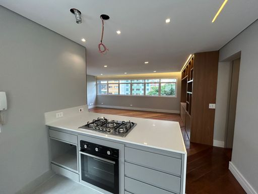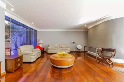 Apartamento totalmente reformado, em edifício vintage com arquitetura dos anos 70, reconhecido pelos ambientes amplos, janelões e excelente ventilação.