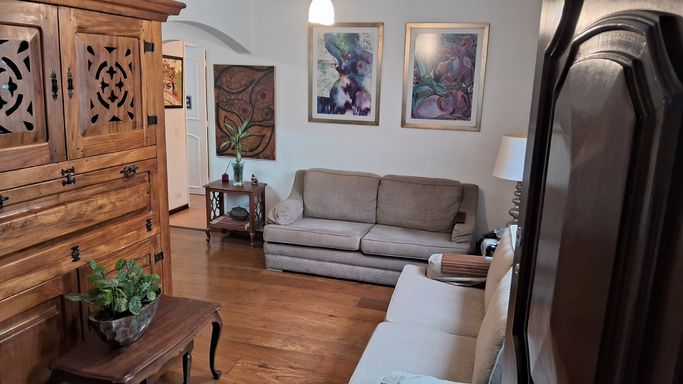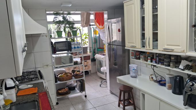O imóvel possui 3 dormitórios, sendo 1 suíte, com um dos quartos atualmente adaptado como escritório, ideal para home office. O living amplo para dois ambientes proporciona conforto e boa circulação, enquanto a cozinha ventilada conta com área de serviço funcional.