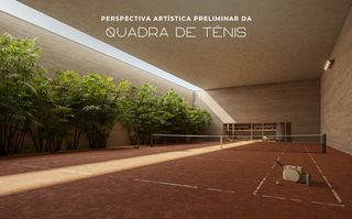 -Quadra de tênis de saibro coberta com lounge