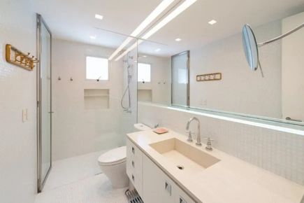 Amplo living com pé direito alto, varanda integrada, espaço para sala de estar, sala de jantar e home theater, lavabo, cozinha com armários personalizados, área de serviço, banheiro de serviço e
