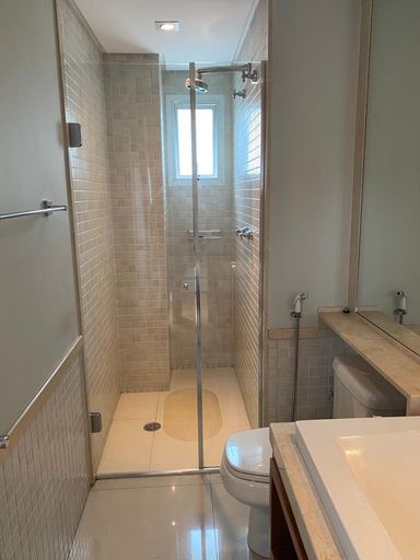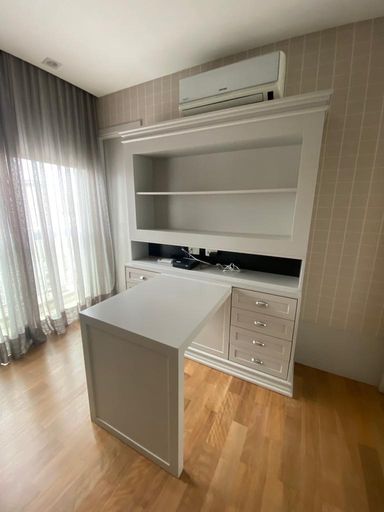 Na área íntima são 2 suítes excelentes, cada uma equipada com ar condicionado e armários planejados, e a master com closet walk-in.