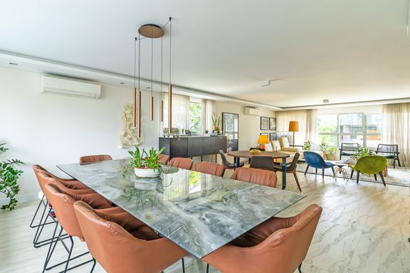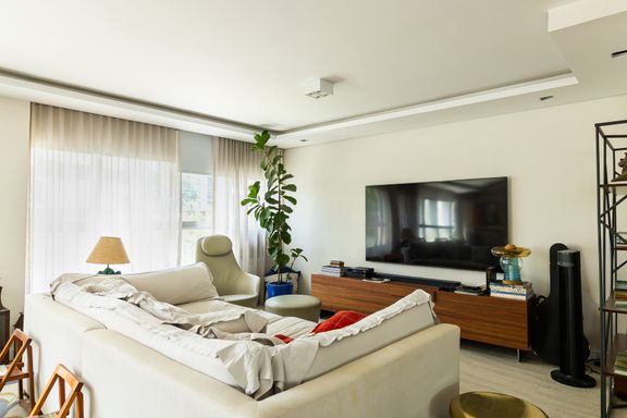 Amplo e confortável apartamento de 280m², acabamento impecável, espaçoso living retangular, sala de jantar e seus janelões generosos garantem luz e ventilação natural, além de uma maravilhosa vista de todo Itaim Bibi. As salas de estar, jantar e home theater contam com um lindo design e acabamentos em gesso no teto, cozinha ampla e repleta de armários.