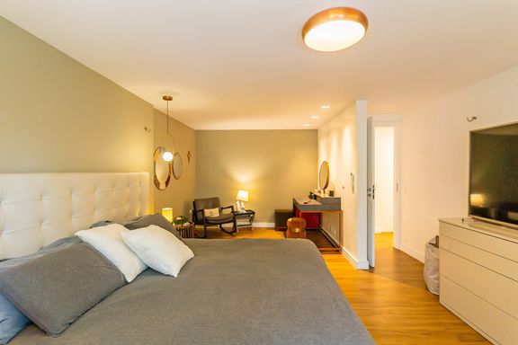 Na ala íntima, dispõe de 3 suítes (+1 quarto que pode reverter) com piso em tábuas largas e armários embutidos. Conta com 3 vagas na garagem.