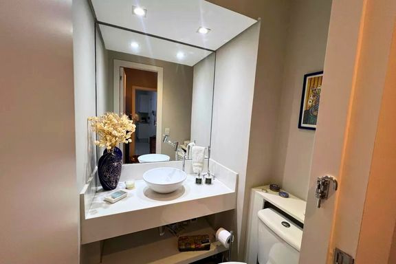 Totalmente equipado com ar-condicionado em todos os ambientes e janelas antirruído, garantindo conforto e tranquilidade. Conta ainda com marcenaria completa, com armários de excelente qualidade.