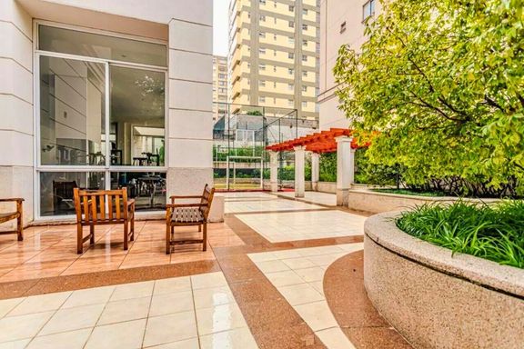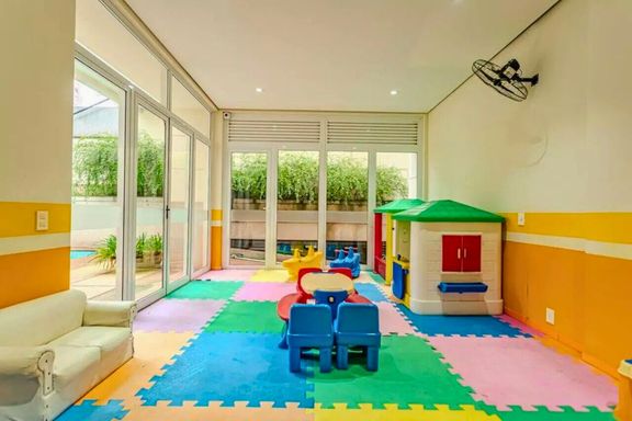 Condomínio conta com portaria 24 horas, academia, piscina, quadra esportiva, salão de festas, churrasqueira, playground, sauna e brinquedoteca.