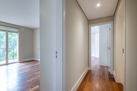 Um apartamento de 385 m², assinado pelo renomado Adolpho Lindenberg, em um edifício exclusivo com apenas 7 unidades, onde cada detalhe foi cuidadosamente pensado para oferecer sofisticação, amplitude e absoluto conforto. A planta é generosa e muito bem distribuída, com hall privativo e um belíssimo piso de madeira com isolamento acústico, garantindo silêncio e acolhimento em todos os ambientes.