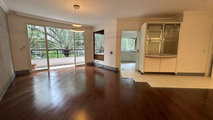 Amplo e iluminado living para até 3 ambientes, lavabo e varanda com vista para o verde do bairro.
