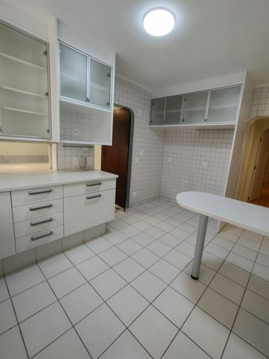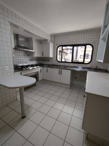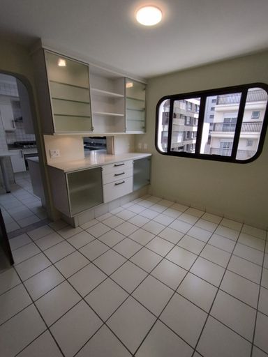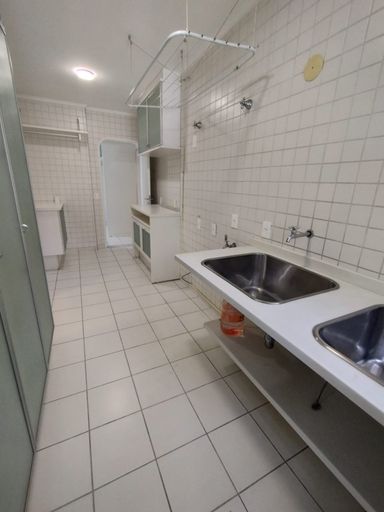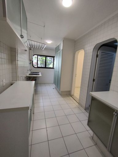 Cozinha bem espaçosa, copa e dependência de serviço completa com quarto e banheiro.