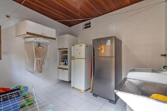 Nos fundos, há uma edícula completa, com dois dormitórios na parte superior e lavanderia, banheiro de funcionários e saleta de apoio no térreo, ideal para uso de serviço ou hóspedes.