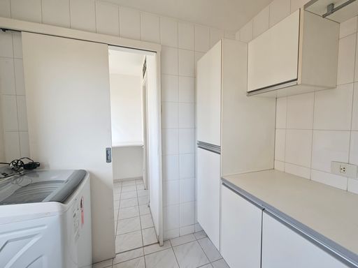 Cozinha com possibilidade de integração à sala, área de serviço e quarto e banheiro de serviço.