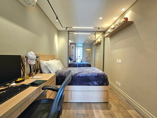 Completando este espaço, encontram-se um elegante escritório, um lavabo e uma quarta suíte,