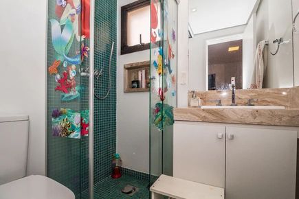 -4 suítes amplas e bem iluminadas sendo uma master com varanda, closet e banheiro Sr. e Sra.