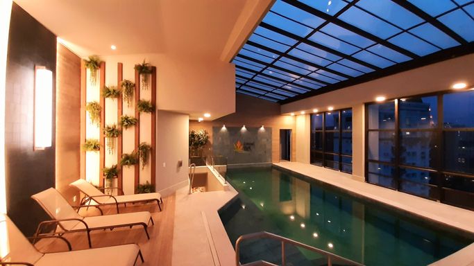 A vista da piscina na cobertura é incrível e a academia super bem equipada deve agradar aqueles que buscam um estilo de vida saudável.