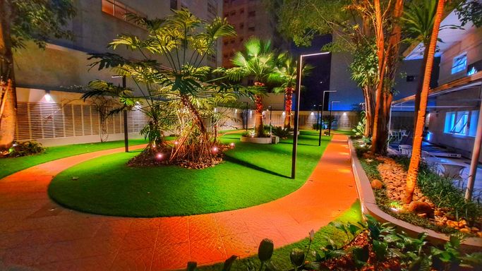 Além disso, o flat oferece outras facilidades, como sala de pilates, sala de massagem, sauna, lounge com vista, pet place, playground e estacionamento pago para visitantes.